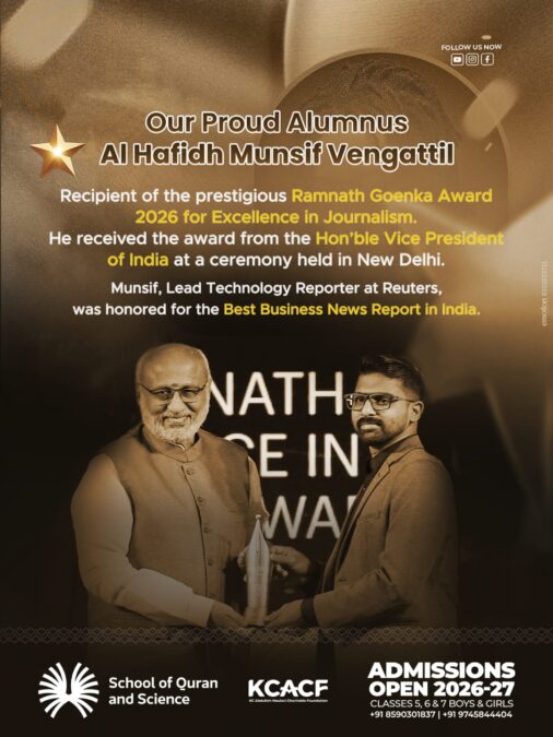 Proud Alumni Achievement Our alumnus Al Hafidh Munsif VengattilWinner of the Ramnath Goenka Award 2026 for Best Business News Report in India. Honored by the Hon’ble Vice President of India 🇮🇳 A proud moment for all of us